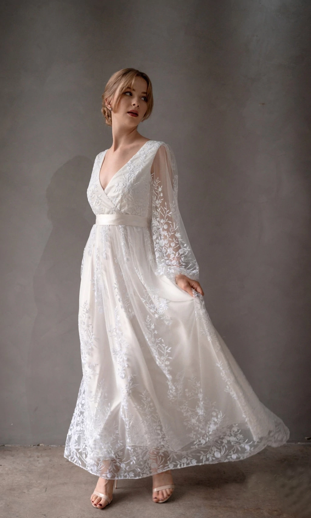 Vestido de noiva no modelo Envelope Tule Bordado, feito em nobre tule bordado, em opções Branco e Off White. A noiva poderá solicitar alterações/customizações, consulte